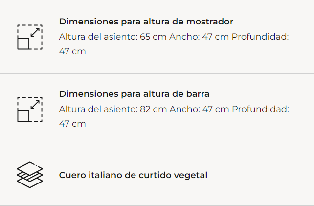 El cuero proviene de una de las mejores curtiembres en Italia y se envía a Suecia, donde seleccionamos las mejores piezas y fabricamos a mano estos cómodos asientos para taburetes de bar.