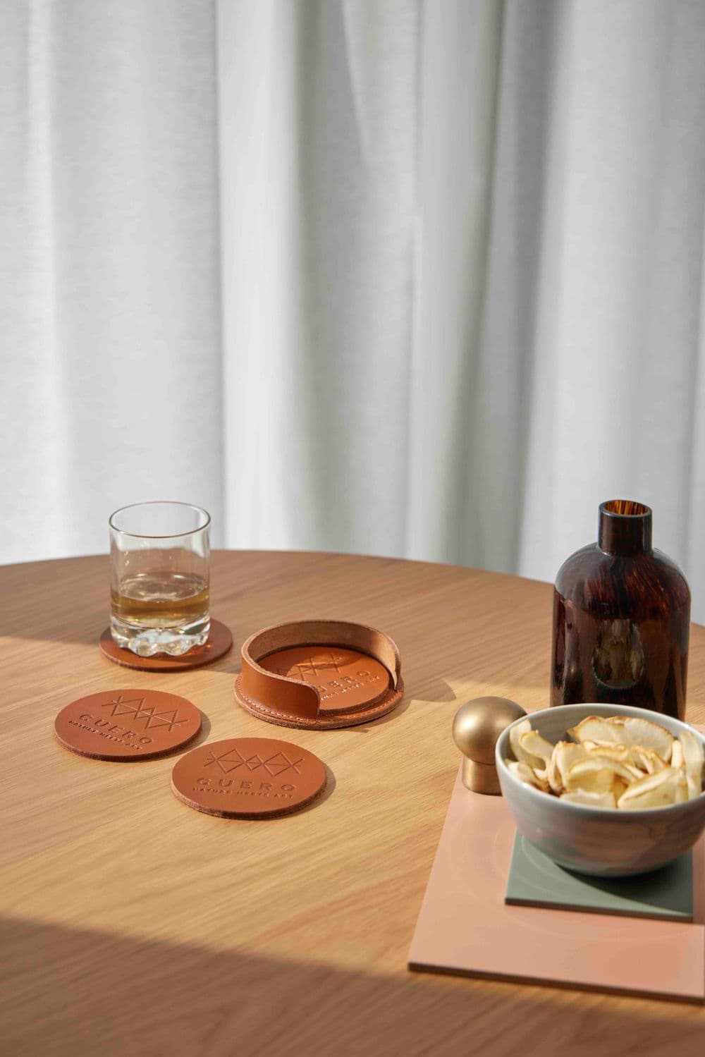 Porque no queremos que tu mesa se dañe, aquí tienes un pequeño consejo para ti. Tenemos nuestros posavasos de cuero muy especiales que están esperando ser colocados sobre tu hermosa mesa de madera de abedul nueva.