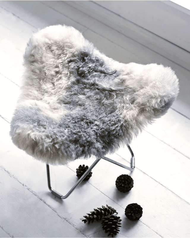 The best chair to keep you warm and comfortable during the coldest nights. Comfortable butterfly chair made with sheepskin from Iceland. Made in Sweden.