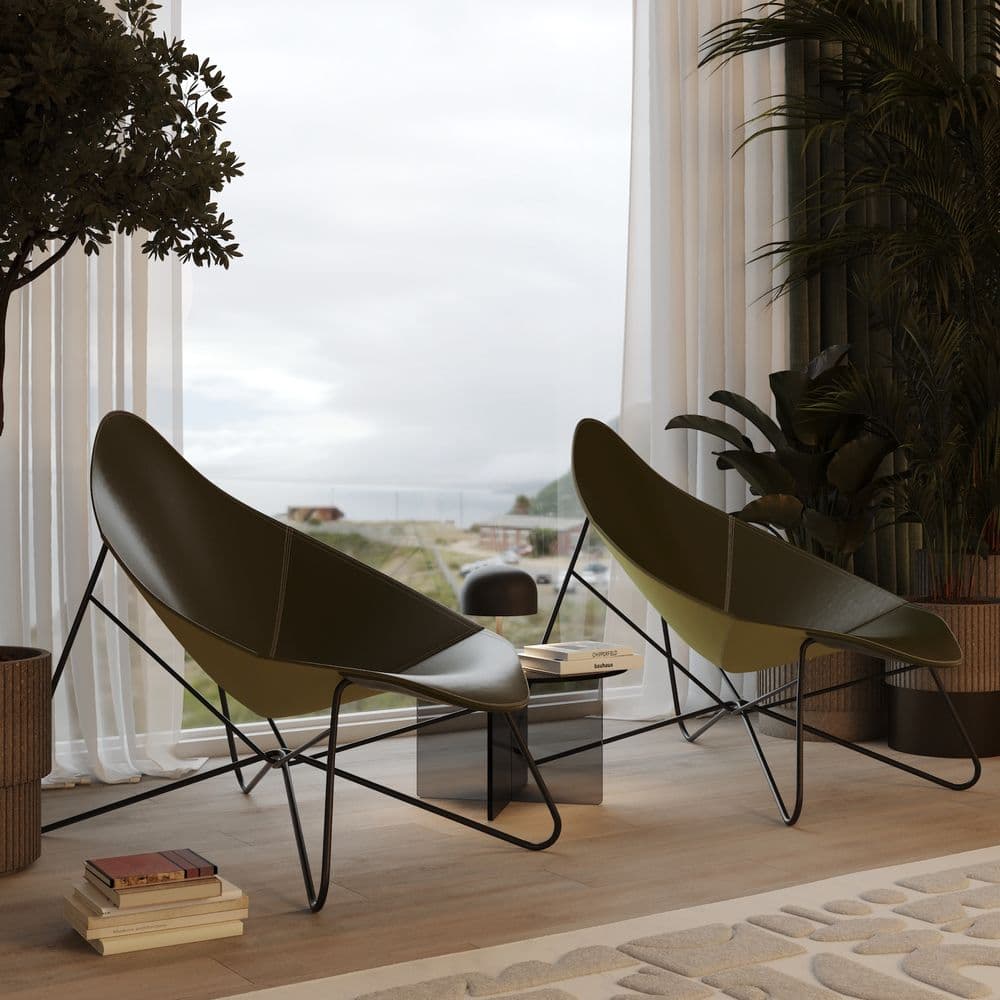 Abrazo, mikä tarkoittaa halausta espanjaksi, kuvastaa tämän tuolin olemusta täydellisesti. Hän jatkoi: 'Ei ole mitään mahtavampaa kuin kohdata joku, jota rakastat, halauksella.' Ja todellakin, Abrazo-tuoli on suunniteltu mukavuuteen.