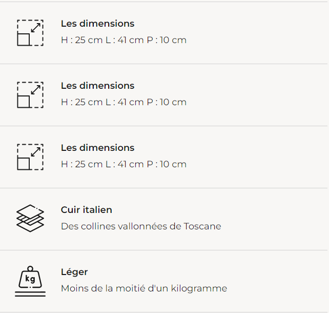 Il s'agit d'un cuir végétal spécial qui développe une patine avec le temps.