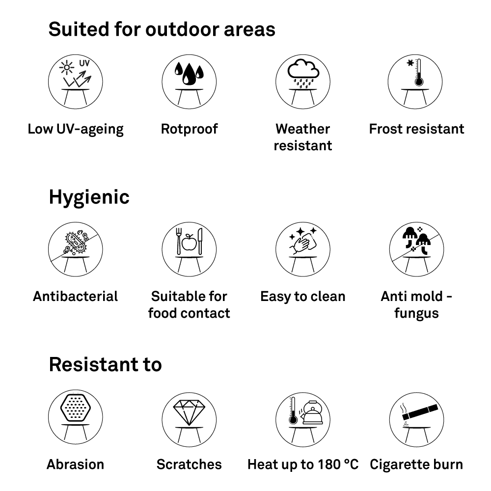 Made in very high quality HPL from France that is made to sustain the rough outdoors.