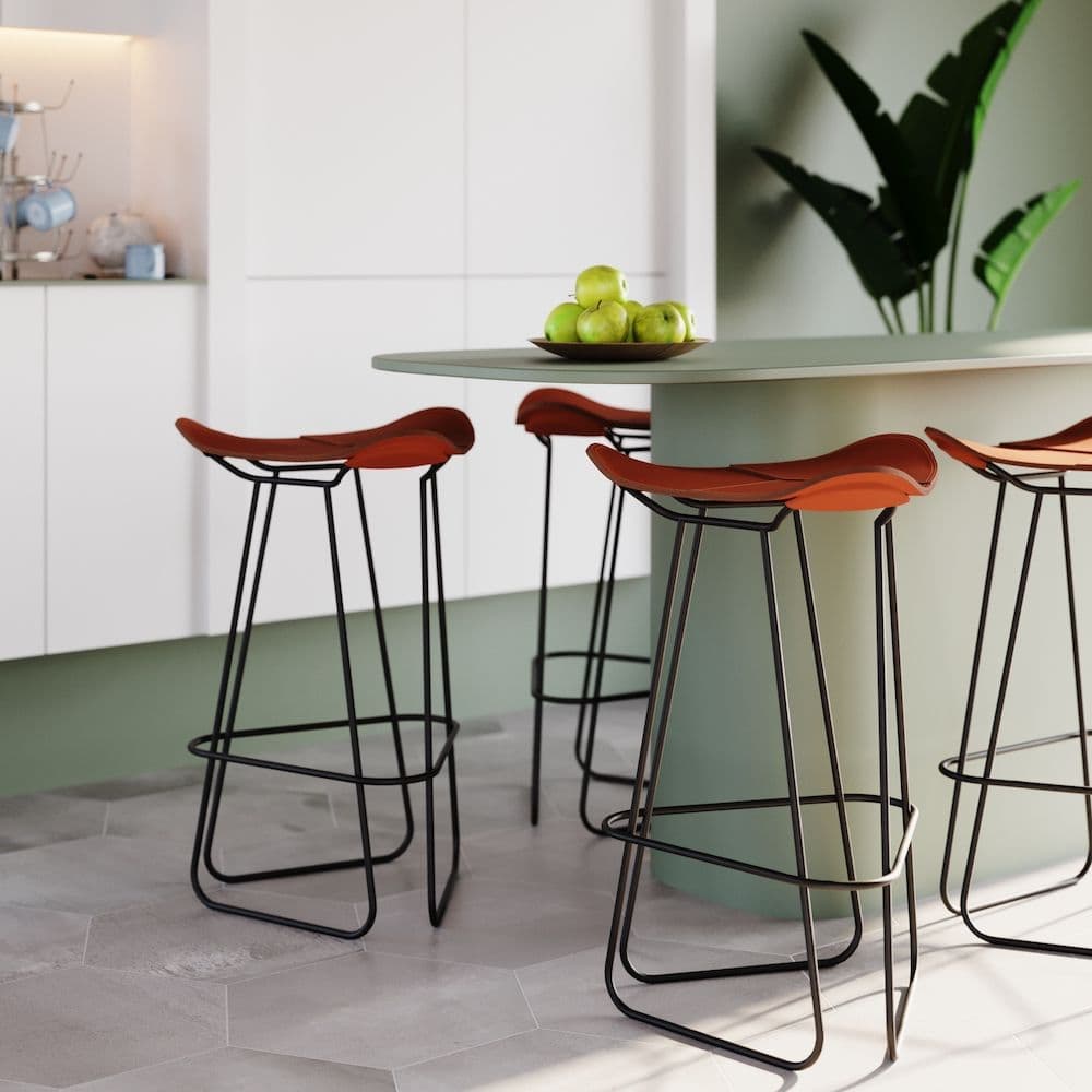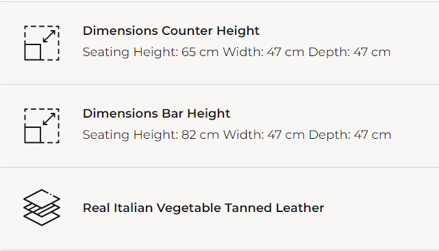 The leather is sourced from one of the finest tannery in Italy and shipped to Sweden where we select the best pieces and hand make these comfortable seats for the barstools.