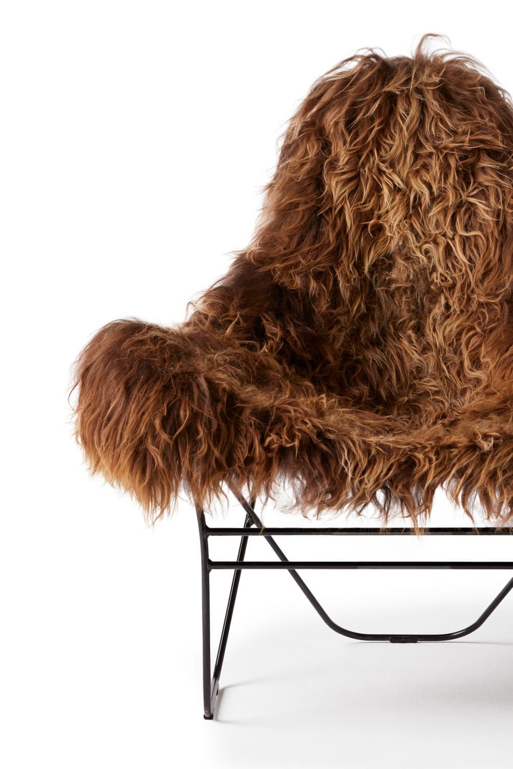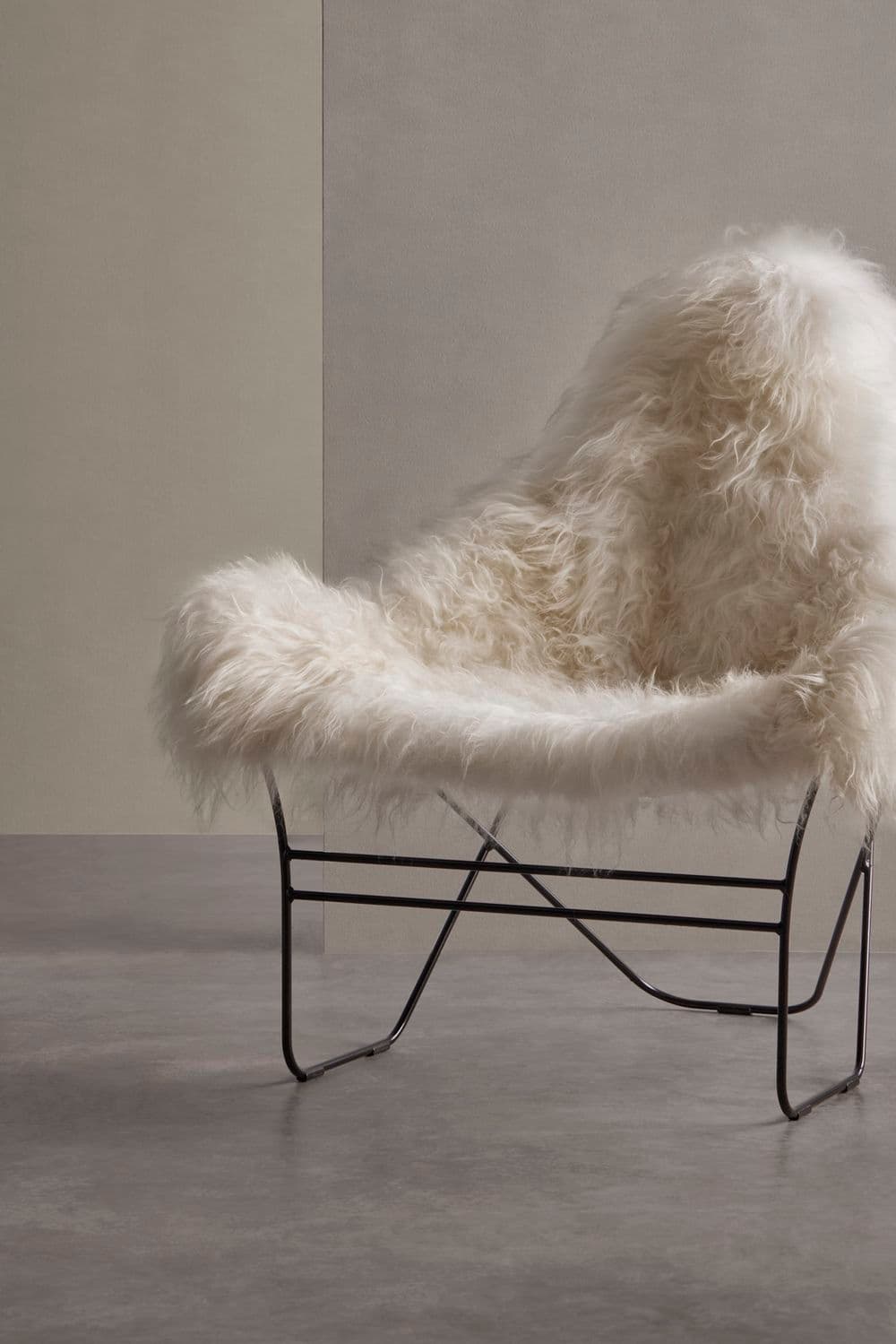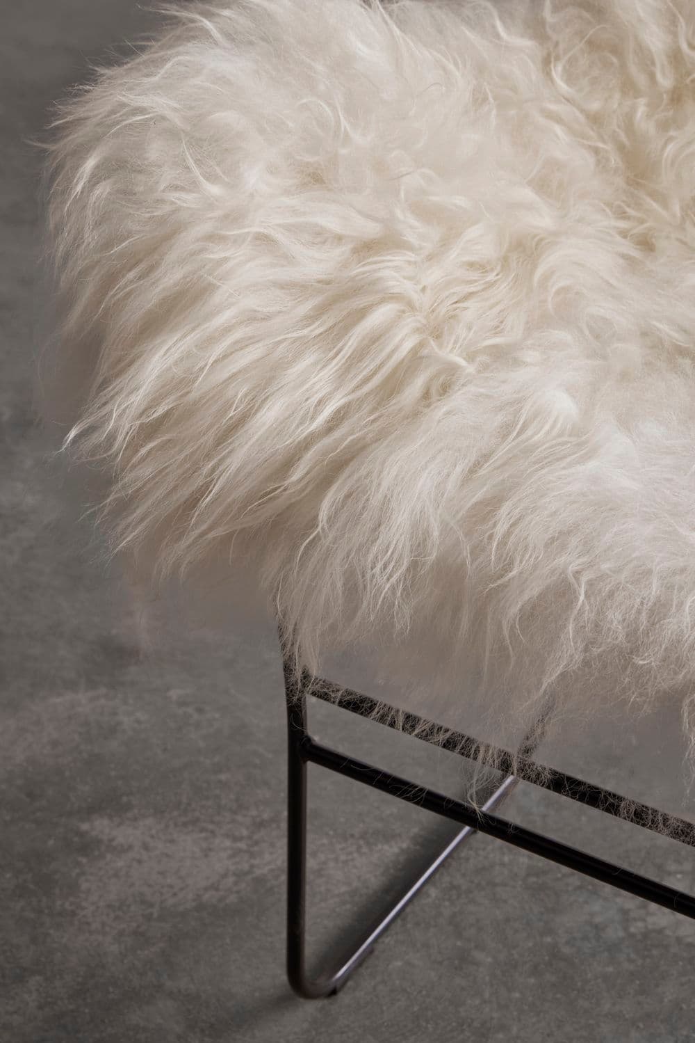 The Icelandic sheepskin used for this armchair is carefully selected for its superior quality. It is a pure breed of the ancient Icelandic Sheep, descended from the sheep brought to the island by Vikings over a thousand years ago. This wool has been specially developed to survive the cold Icelandic winters, making it warm and cozy to sit in.