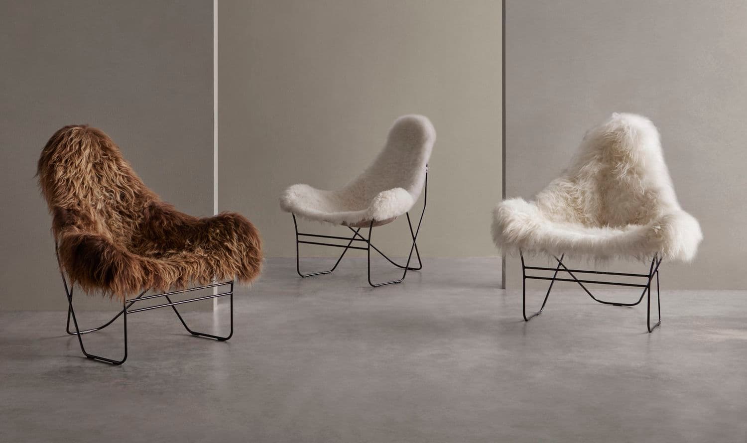 The Icelandic sheepskin used in the Valhalla armchair is a by-product of meat production in Iceland and has been ecologically tanned to ensure no water or soil is contaminated.