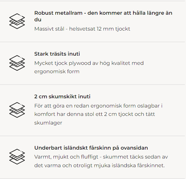 Om du tröttnar på stolen så småningom är det bara att kontakta oss i framtiden så erbjuder vi dig en kraftigt rabatterad ersättningssits i din önskade stil.